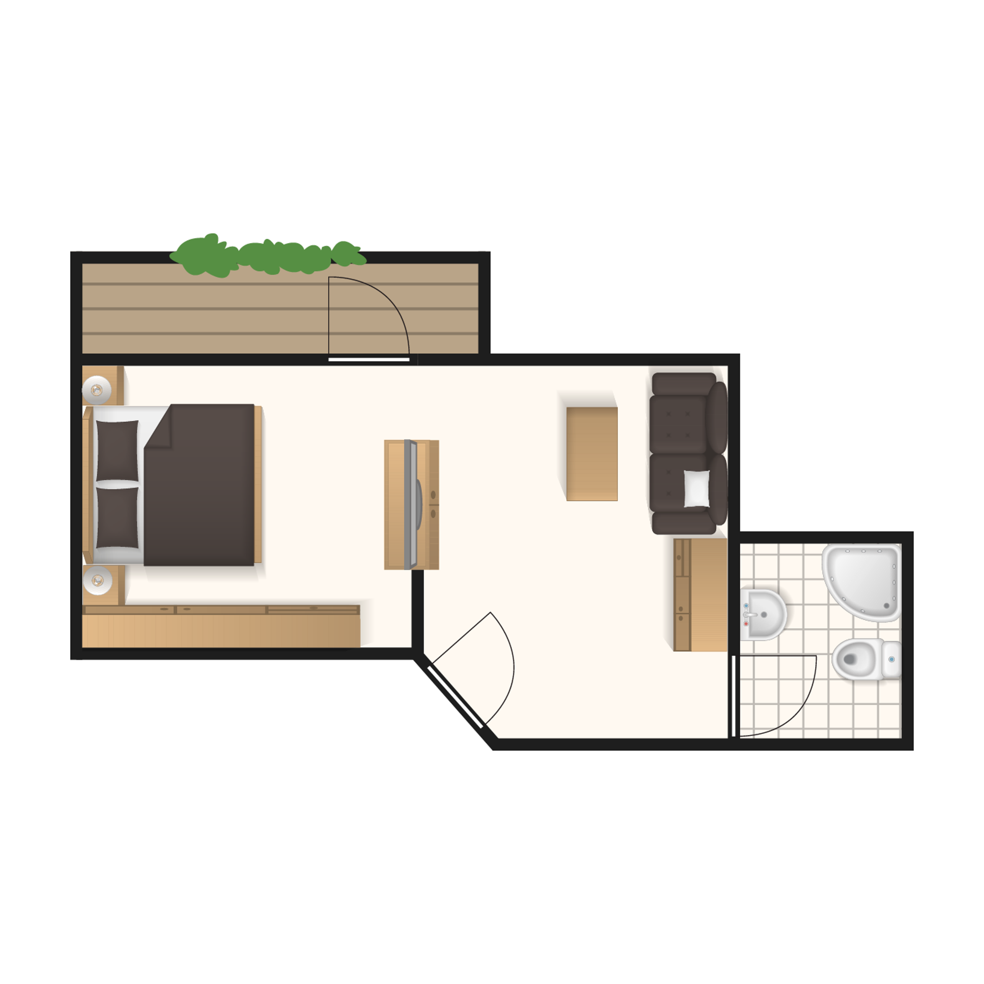 Teilweise verfügen die Zimmerkategorien Doppelzimmer Bergwald, Panorma und Studio über ein Schlafsofa, das nach Rücksprache für Kinder oder eine dritte Person genutzt werden kann. Bitte lassen Sie uns dies frühzeitig wissen.